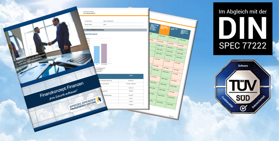 Mit unserer Software vergleichen wir für Sie bis zu 300 Versicherungsgesellschaften nach Preis und Leistung. Nutzen Sie auch unser Finanzgutachten nach DIN Spec 77222. Damit finden wir immer die für Sie passende Gesellschaft.